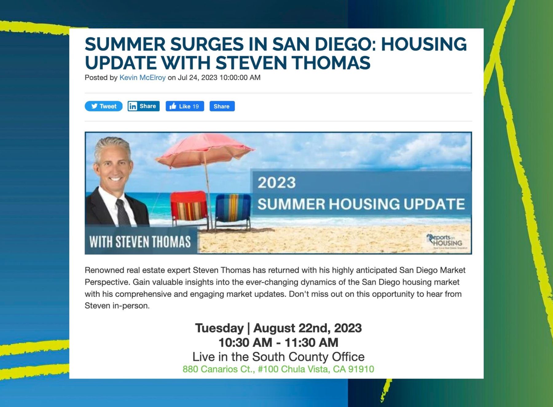 PSAR: Summer Surges in San Diego Housing Update With Steven Thomas